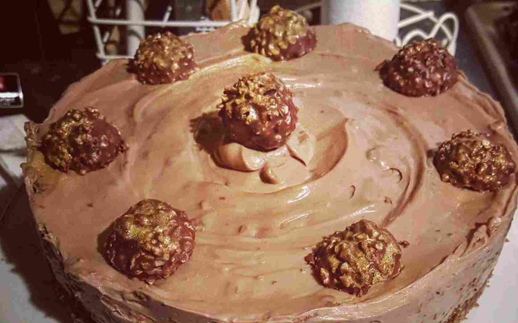Mouth watering and toothsome cake with Ferrero Rocher slightly melted for maximum taste.